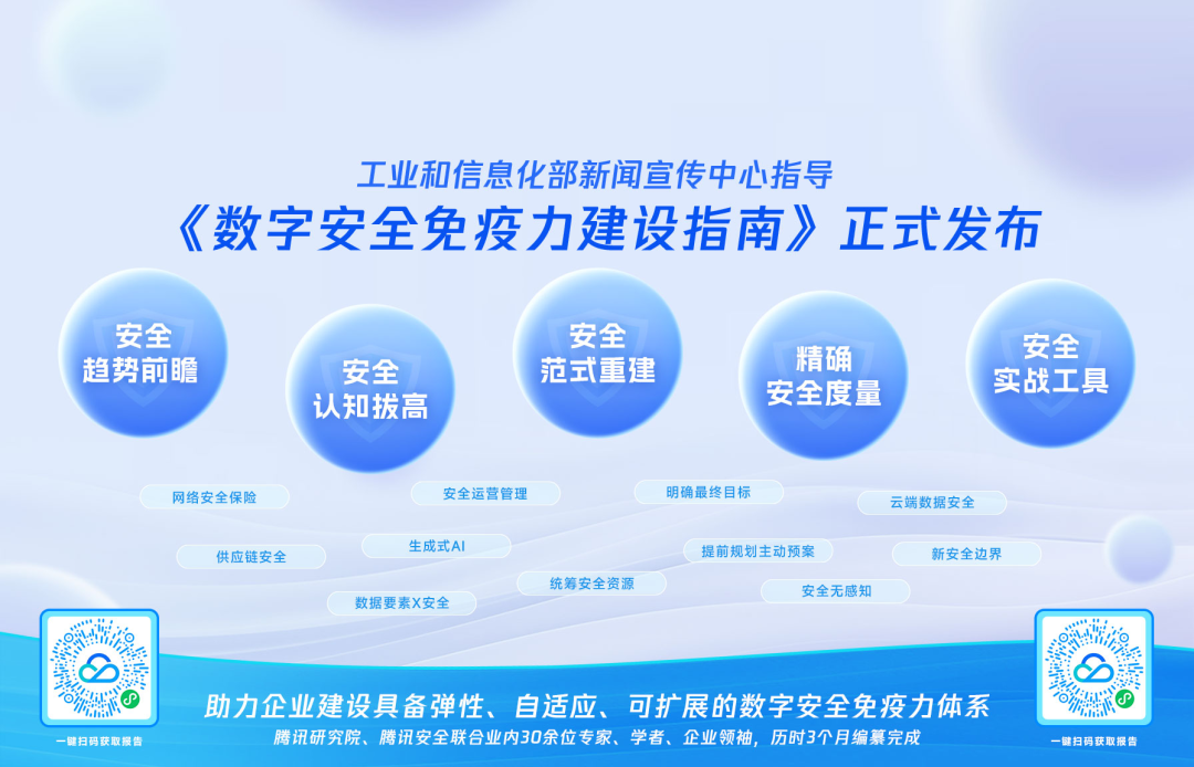 1月17日,《數(shù)字安全免疫力建設(shè)指南》發(fā)布暨行業(yè)實(shí)踐研討會(huì)在海南三亞舉行。指南由工業(yè)和信息化部新聞宣傳中心(人民郵電報(bào)社)指導(dǎo),騰訊安全、騰訊研究院、中國(guó)信息安全聯(lián)合三十余位業(yè)內(nèi)專家、學(xué)者、企業(yè)領(lǐng)袖共同編制,圍繞“發(fā)展驅(qū)動(dòng)”的安全范式,從理念認(rèn)知、范式重建、量化評(píng)估、關(guān)鍵模塊以及實(shí)踐案例等方面,為企業(yè)構(gòu)建數(shù)字安全免疫力提供指引和參考。