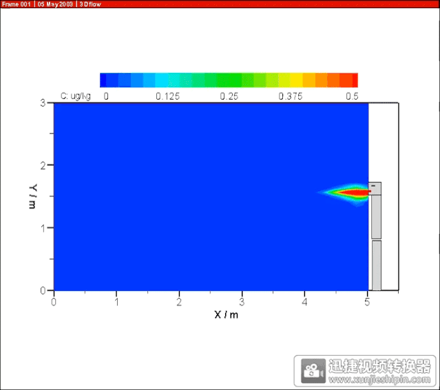 下圖為計算流體力學(xué)(CFD)模擬人打噴嚏的氣溶膠噴射距離: