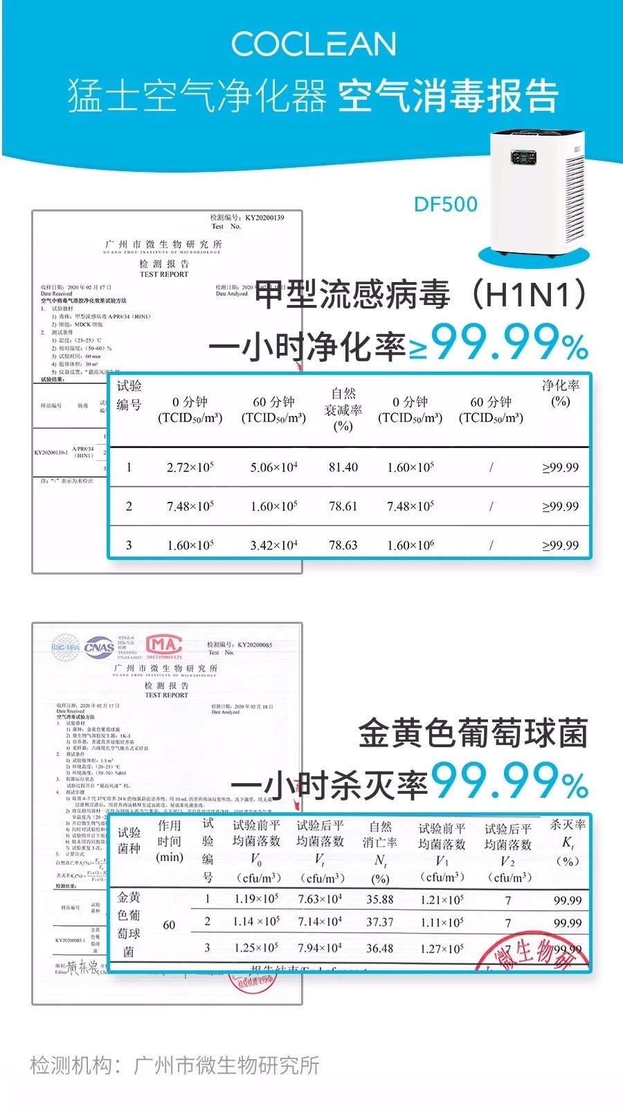 經(jīng)廣州市微生物研究所檢測,猛士空氣凈化器1小時內(nèi)可達(dá)到:
