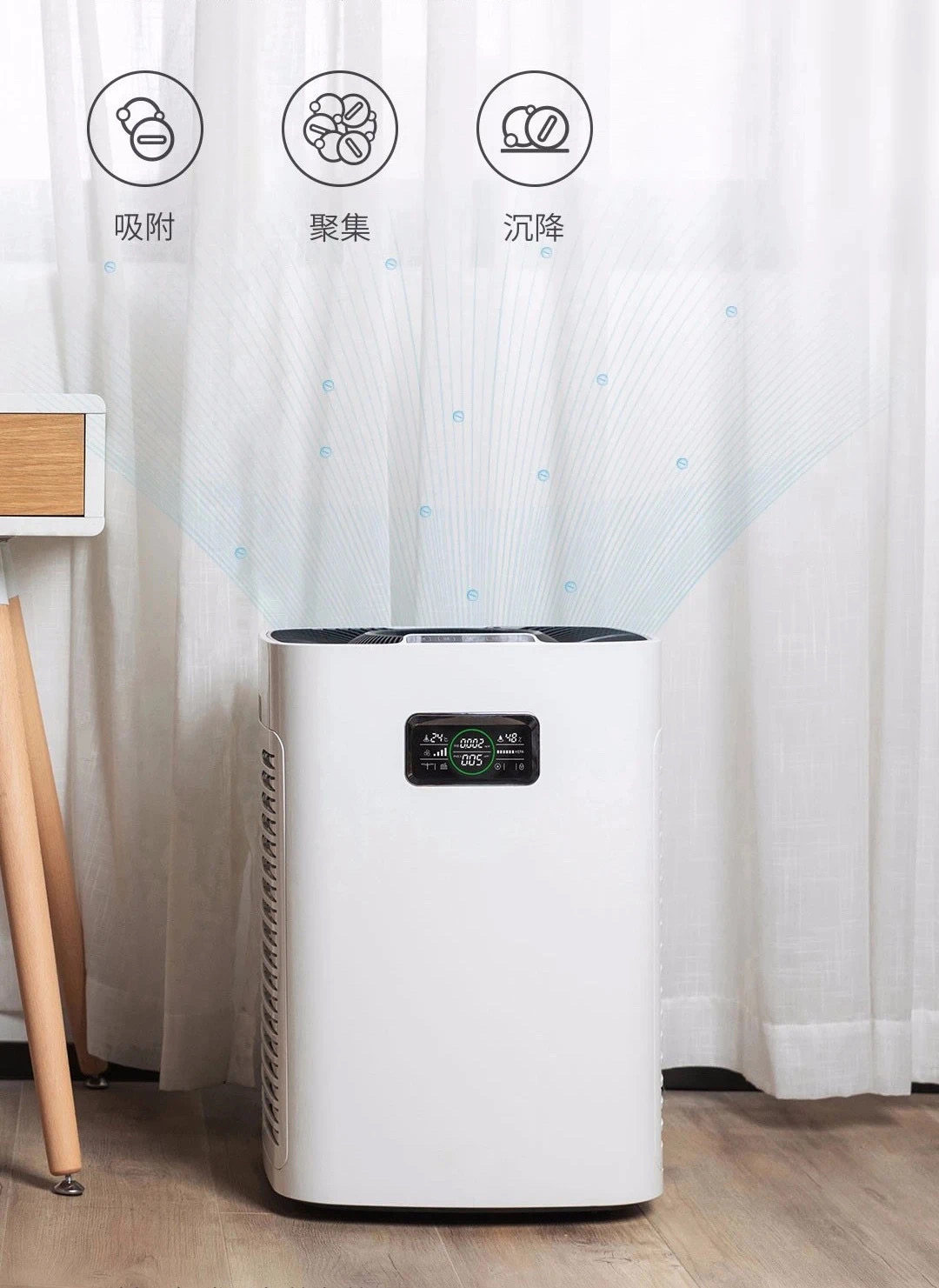 動態(tài)負(fù)離子Dynamic Anion專利技術(shù)(專利號:ZL 201610798137.5),可以主動沉降空氣中的懸浮顆粒物,包括前面提到的氣溶膠顆粒,并使細(xì)菌、病毒的氫鍵斷裂,有效殺滅病菌。而且國際公認(rèn)負(fù)離子具有積極的健康功效,有助提神醒腦。經(jīng)CMA機(jī)構(gòu)檢測,無臭氧釋放。